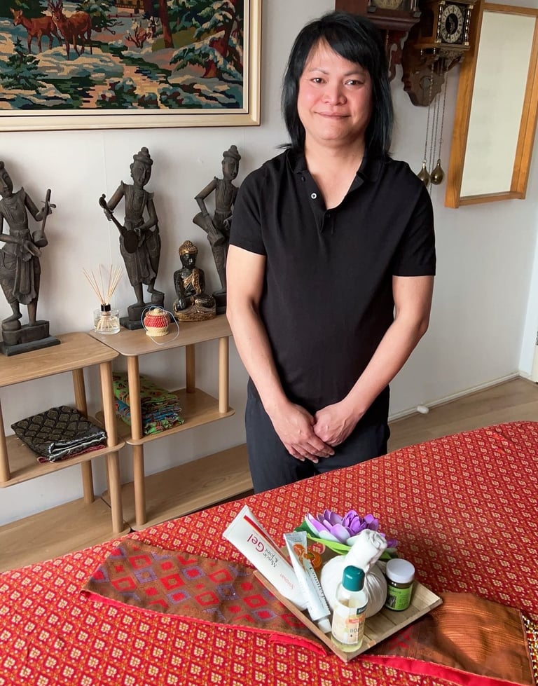 Geboren en opgeleid in Thailand, brengt hij de eeuwenoude traditie van Thaise massage met zich mee – gecombineerd met warme aandacht voor elke klant.